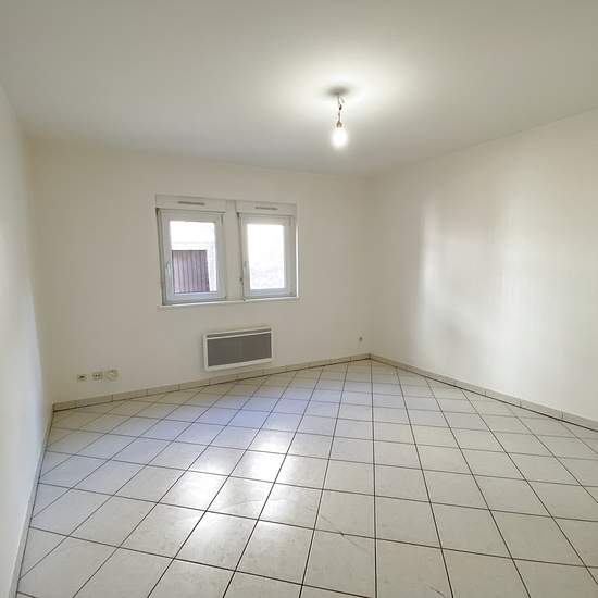 Appartement 1 pièce situé à Sélestat, Rue de la Pomme d'Or, au rez-de-chaussée, d'une surface habitable de 25,93m2, comprenant une entrée, une pièce principale, une cuisine équipée avec accès à une petite cour privative, une salle d'eau avec WC, chauffage individuel électrique et une cave. Libre de suite. Loyer 350EUR + 48EUR d'avances sur charges.