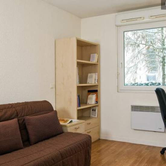 Studio tout équipé pouvant accueillir 2 personnes. Il comprend une kitchenette (équipée notamment d'un réfrigérateur et de plaques électriques) et une salle de bain. La résidence vous propose des studios équipés d'une kitchenette, d'une salle d'eau, et meublés pour votre plus grand confort. De nombreux services sont à votre disposition. La résidence se situe entre le Campus Universitaire de Rouen et le Technopôle du Madrillet (INSA, ESIGELEC), tous deux accessibles par les transports en commun. Le métrobus station Voltaire, au pied de la rés...