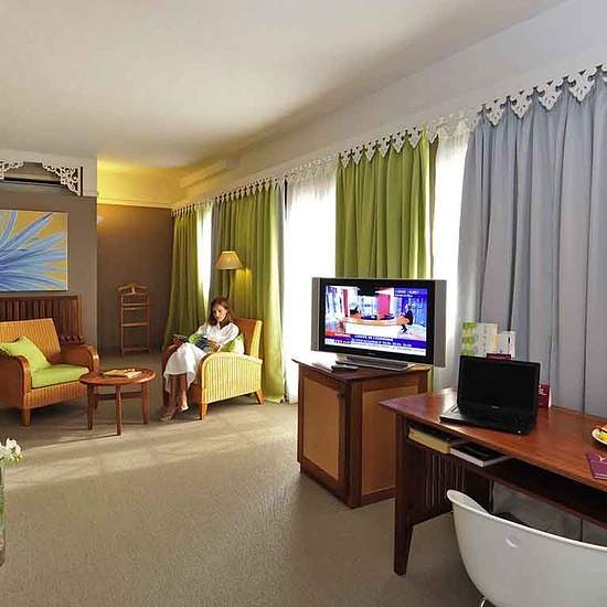 Hôtel pour les voyageurs en quête d'expériences locales et authentiques. Au Nord de l'île, lové sur les hauteurs de St Denis, proche de l'aéroport et du centre ville, la résidence hôtelière surplombe la ville et vous offre une vue panoramique sur l'Océan Indien. L'hôtel est équipé de 108 chambres standards, supérieures, privilèges et suites. Il dispose d'1 piscine de 500m², 1 salle fitness, 1 salon bien être, 1 restaurant 1/2 gastronomique & bar à cocktails, 6 salles de réunion. Une navette assure vos transferts aéroport et centre ville de 9...