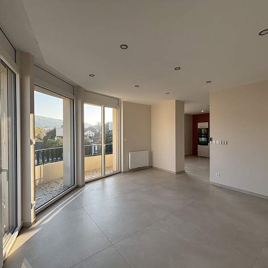 NOUVEAUTÉ F4 de standing Place Bellevue Saint-Étienne À louer Place Bellevue magnifique appartement de 88,39 m² avec des prestations de qualité situé au 7eme étage avec ascenseur au sein d'une copropriété sécurisée, il offre une vue dégagée sans vis-à-vis et une excellente luminosité Dès l’entrée vous découvrirez une cuisine contemporaine équipée avec four, plaque de cuisson, hotte et micro-ondes ouverte sur un bel espace de vie moderne et lumineux avec de grandes baies vitrées donnant accès à un balcon. Un couloir dessert l’espace nuit qui ...