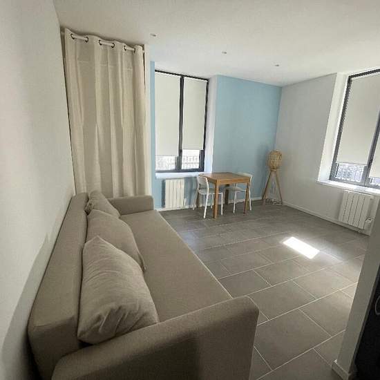 Studio étudiant au sein d'une résidence sécurisée Composé d'une cuisine équipée (frigo, plaques de cuisson), ouverte sur la pièce principale, et d'une salle de bains avec WC. Le logement est équipé d'un canapé convertible, table, chaises et rangements. Disponible immédiatement La résidence met à disposition des locataires des places de stationnement (en location supplémentaire à 35€ mensuel) et une terrasse collective partagée. Commerces, transports et écoles se trouvent à 5mns à pied de la résidence. Les informations sur les risques auxquel...