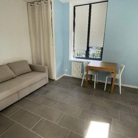 Studio étudiant au sein d'une résidence sécurisée Composé d'une cuisine équipée (frigo, plaques de cuisson), ouverte sur la pièce principale, et d'une salle de bains avec WC. Le logement est équipé d'un canapé convertible, table, chaises et rangements. Disponible immédiatement La résidence met à disposition des locataires des places de stationnement (en location supplémentaire à 35€ mensuel) et une terrasse collective partagée. Commerces, transports et écoles se trouvent à 5mns à pied de la résidence. Les informations sur les risques auxquel...