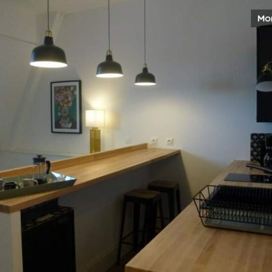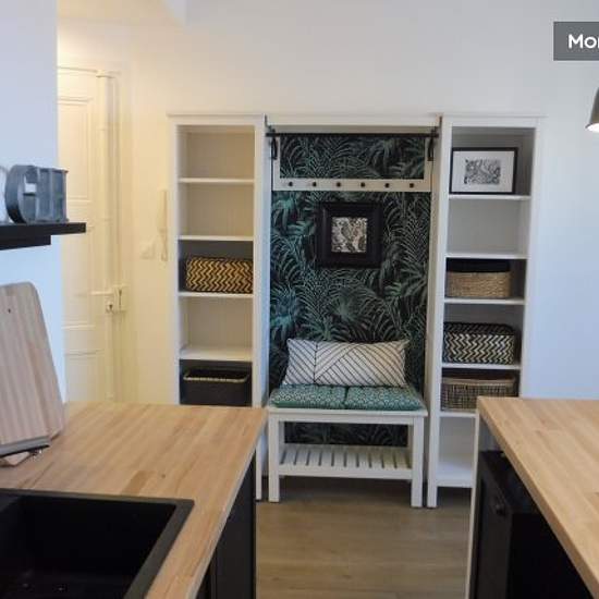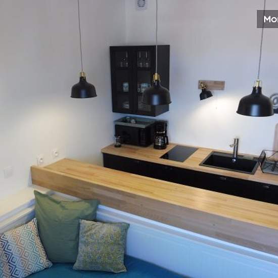 A pied à terre in Saint Etienne in the former Grand Hôtel de Saint Etienne, transformed into an apartment, with a view over the rooftops of the city. The completely renovated studio, located on the 5th floor with elevator, consists of: - A bathroom with shower, towel and bath mat. - From a closet on the right as you enter. - A kitchenette with: Refrigerator Washing machine, tumble dryer A two-burner plate A microwave A sink Many storage spaces All equipped with everything you need to cook - From a sleeping area with a single seat bench, conv...