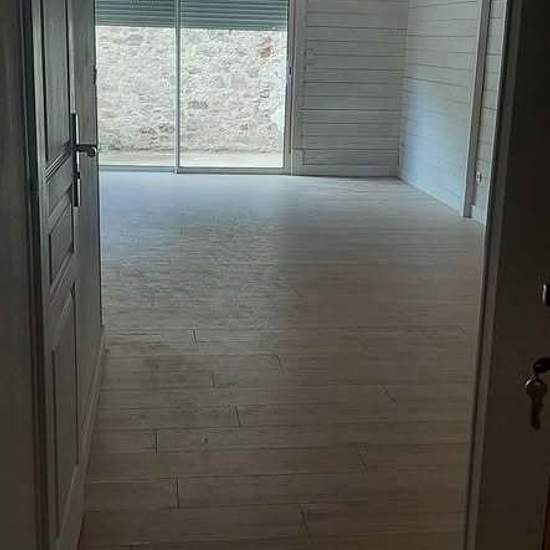 Grañd studio style chalet bois avec terrasse dans résidence séniors Climatisé Kitchenette, salle de bain avec douche italienne et seche serviettes, wc séparé, grande pièce commune, buanderie commune, grande terrasse et jardin commun Parking privé Cabinet infirmière Face à l'hôpital et à proximité du centre ville et pharmacie Très calme et apaisant