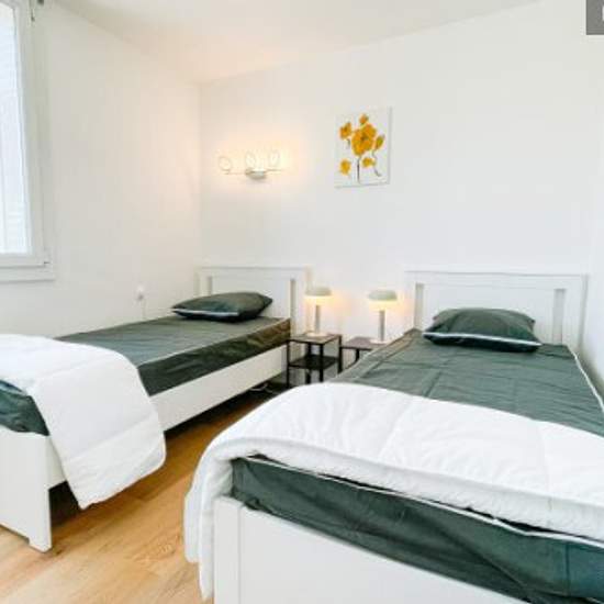 Découvrez notre beau T4 de 70m² rénové en 2023 et climatisé situé 14 Rue Alphonse Allais, 38400 Saint-Martin-d'Hères, France --------------------------------------------------------------------------------------------------------------------------- ** Votre logement :** Votre beau logement se compose : - d'un salon avec télévision donnant sur un balcon aménagé - d'une cuisine séparée toute équipée - d'une chambre indépendante avec lit 160, - d'une 2ème chambre avec 2 lits simples - d'une 3éme chambre avec 2 lits simples - d'une salle d'eau a...
