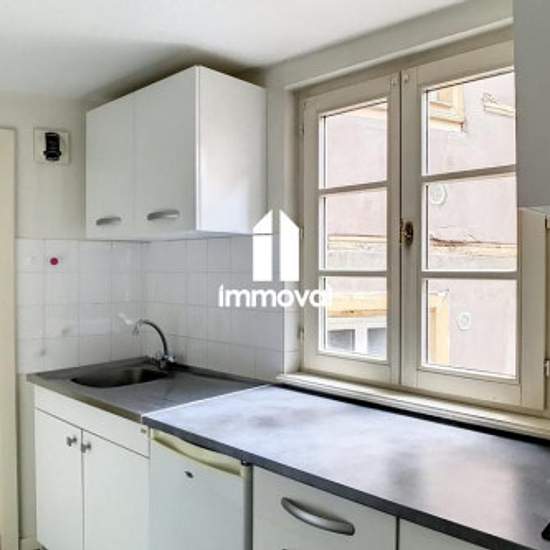 Immoval offers, in the city centre at Place de la Cathédrale, a one-room apartment of 28.27 m² on the 3rd floor, comprising an entrance hall, an independent fitted and equipped kitchen, a living area, a storage room, and a bathroom with toilet. Hot water and heating are individual and electric. Available at the end of November 2025.