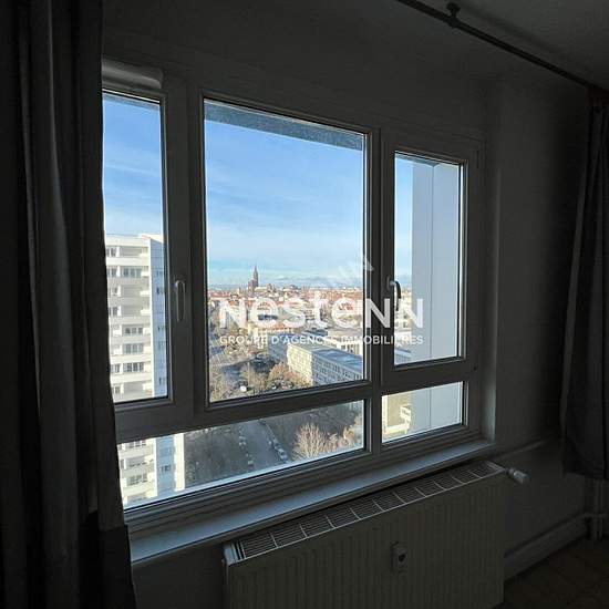 Appartement studio STRASBOURG ESPLANADE - VIUE CATHÉDRALE. ** À LOUER UNIQUEMENT CHEZ NESTENN ** STRASBOURG CENTRE / SECTEUR ESPLANADE - BELLE VUE DEGAGÉE SUR LA VILLE DE STRASBOURG - CATHEDRALE - LOCATION NUE Studio de 19.12m² : situé au 14ème étage d'une copropriété avec ascenseur. Le studio se compose : d'une entrée avec placards - d'un dégagement avec une kitchenette - d'une pièce principale - d'une salle d'eau. Chauffage collectif gaz et électricité inclus dans les charges. Parking collectif à la copropriété Disponible de suite...