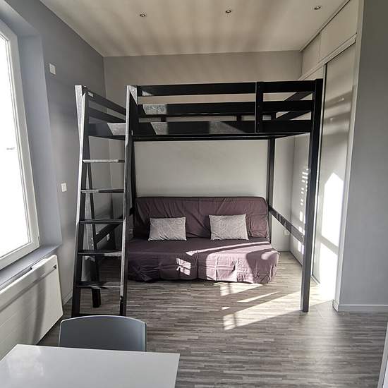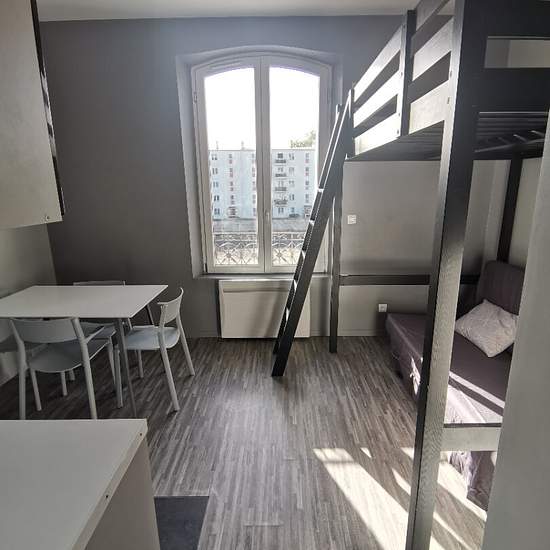 Dans une petite copropriété, proche gare et centre-ville, appartement meublé de type studio/18m2 comprenant pièce de vie avec coin cuisine aménagée et équipée, salle d'eau avec WC, placards... A visiter ! Place de parking extérieur possible ( 43 euros ) Copropriété de 10 lots ().