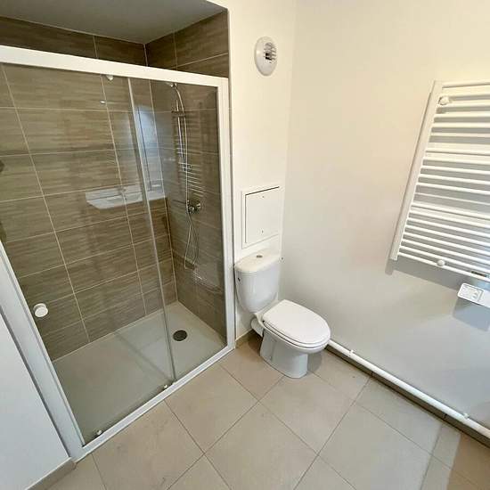 Located in a newly built residence from 2025, a studio on the second floor comprising an entrance, a hallway leading to a shower room with WC, and a living area with a kitchen opening onto the balcony. Rented unfurnished, with good energy performance (DPE C).