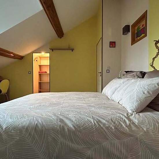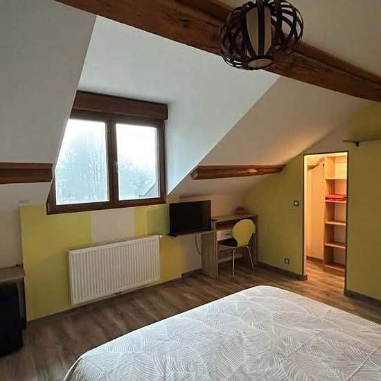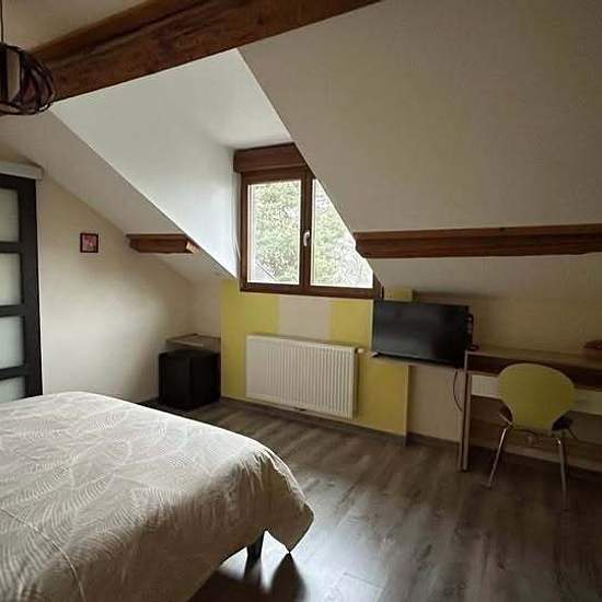 (French border) Hello, Charming, spacious and very comfortable room (20 m²) in a family village house, including a brand-new Queen-size bed (160 x 200), private bathroom with shower and toilet, dressing room/wardrobe, desk, connected TV, minibar, kettle. Independent entrance. Ideal for a business stay. High-speed Wi‑Fi / Ethernet network connection (fiber). Located in Thoiry (01710), close to Geneva Airport (15 min), CERN Meyrin (10 min), and Geneva city center (30 min). Less than a 2-minute walk to Geneva public transport (bus line 68) and ...