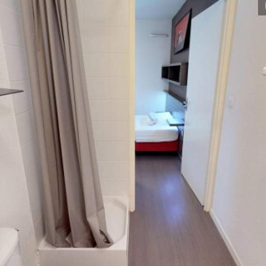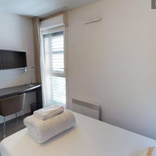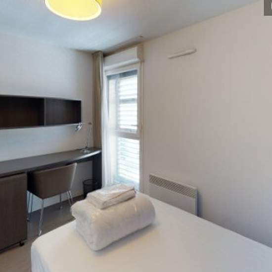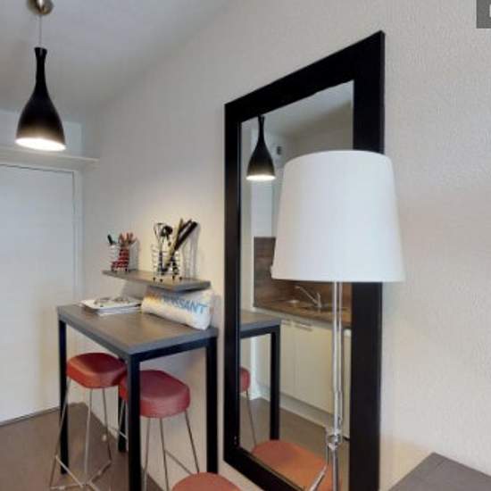 Cet appartement est situé dans une résidence sécurisée avec badges magnétiques et vidéo surveillance. Un chargé de résidence et un gardien de nuit seront là sur place pour votre sérénité. Composé d'un espace cuisine en entrant, d'un espace nuit avec un lit en 140 et un bureau et d'une salle de bain avec douche, cet appartement peut accueillir 2 personnes. La cuisine est équipée avec tous les ustensiles nécessaires. L'appartement bénéficie d'un accès wifi gratuit. Il est entièrement meublé de façon moderne, et est idéal pour vos séjours d'aff...