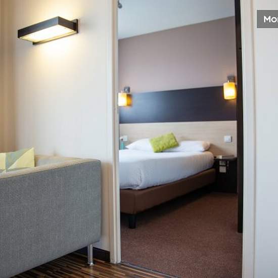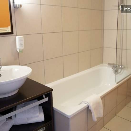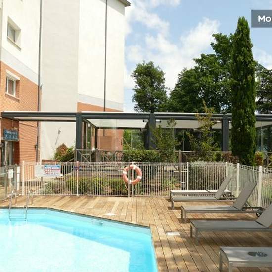 A few kilometres from the city centre of Toulouse and from Toulouse Blagnac Airport, our hotel-Residence stands in an oasis of greenery, in the centre of a park of 2.5 hectares. This apartment will really be the perfect accommodation for a stay of several weeks or several months in Toulouse. Composed of a large living room with sofa bed (140 * 190) and kitchen, a bedroom with double bed (140 * 190) and a bathroom with bath and toilet, this 1BR apartment is 30 sqm. It can accommodate 4 people. The kitchen has microwave, refrigerator, ceramic ...