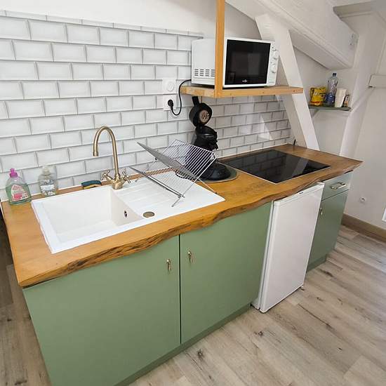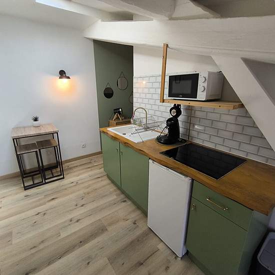 Rue d'e l'hôpital, appartement meublé au troisième étage sans ascenseur avec une belle cuisine équipée avec séjour et coin chambre, une salle d'eau avec toilette. Climatisation réversible. Disponible début Mars 2026. Eau et électricité individuel. A venir visiter rapidement !