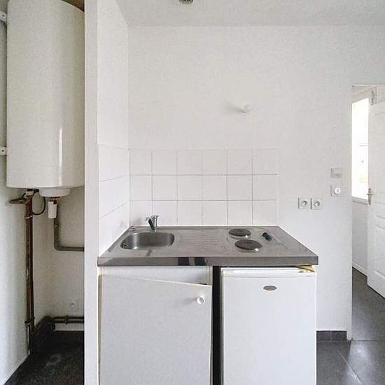 Réf / 2885 - appartement t2 dans charmante longère comprenant une entrée sur séjour, une kitchenette équipée, une chambre avec une salle d'eau et wc. Disponible contacter philippine gli.