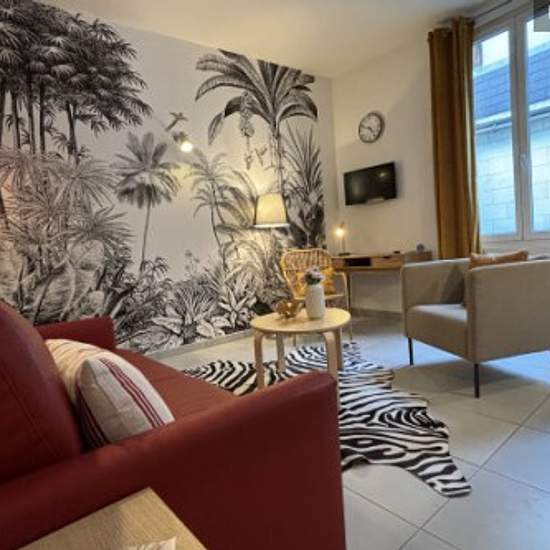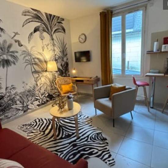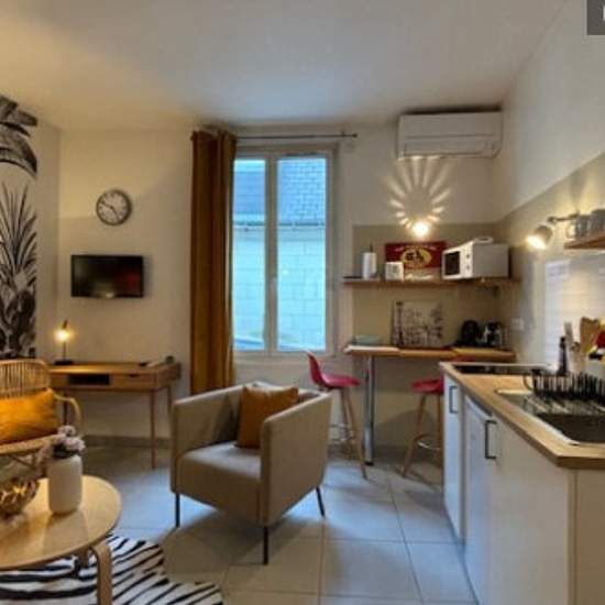 Dans l'hyper centre de Tours, face aux Halles, dans un petit immeuble de 4 appartements, calme et bien tenu , situé au cœur historique de Tours. Beau studio refait à neuf, au 1er étage d'un petit immeuble de deux étages, fonctionnel extrêmement confortable, très bien pensé avec décoration soignée, Cuisine entièrement équipée, induction, micro-ondes, vaisselle en quantité, espace de rangement, espace de travail, grande fenêtre, double vitrages, télévision, interphone, canapé-lit d'excellente facture avec vraie literie de qualité en 1,40 m trè...
