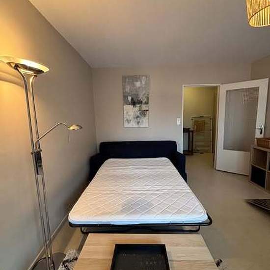 Agréable appartement de 35m2 meublé situé au 1er étage avec ascenseur. Place de parking en souterrain et grenier au dernier étage. Situé en plein cœur du centre-ville à 50m de la rue Émile Zola et de toutes ses commodités. Disponible fin janvier / début février L’appartement se compose de : -Une pièce principale lumineuse avec canapé-lit, meubles de rangement, table et chaises ainsi qu’une télévision. -Une cuisine entièrement équipée (frigo, machine à laver, four à micro-ondes, meubles de rangement, nécessaire de cuisine) -Une salle de...