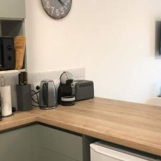 Ce studio entièrement rénové se compose d'une entrée avec penderie, buffet et commode, pièce de vie avec lit relevable Queen size (160 X 200), cuisine équipée et vaisselle comprise, lave-vaisselle, domino induction, mini-four, micro-ondes, cafetière Dolce Gusto, frigo avec freezer, 2 fauteuils, balcon avec salon de jardin et 2 fauteuils, salle d'eau et WC avec cabine douche et lave-linge. Chauffage et climatisation réversible ; parking à proximité dans la rue adjacente à la résidence. Tous commerces et bus de ville à 5 mn, gare SNCF à 15 mn ...