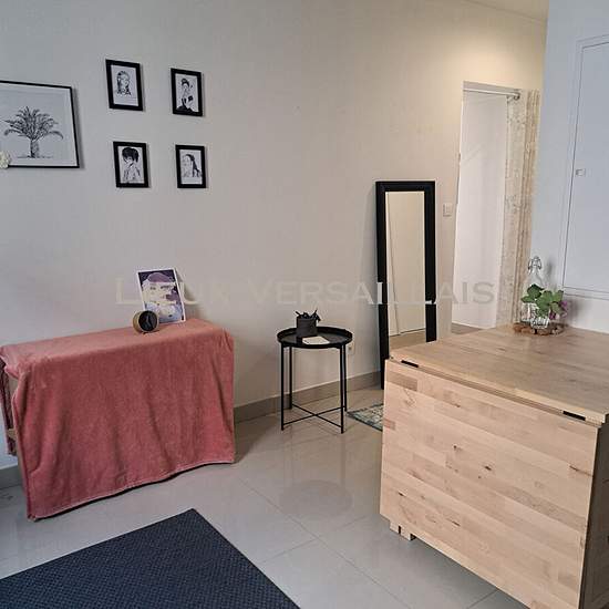Versailles, entre gare des Chantiers et gare Rive Gauche, dans un environnement privilégié. Agréable studio de 28,1 m², en rez-de-chaussée en très bon état, dans immeuble XVIIIe entièrement réhabilité. Entrée avec placards, cuisine équipée (plaques vitrocéramiques, hotte, réfrigérateur), pièce de vie de 18 m², salle de douche + wc. Normes handicapés. Chauffage collectif.