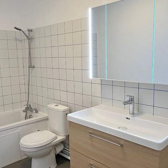 Studio - Nouveau Chesnay area. Le Chesnay, rue de la Celle (bordering Versailles), unfurnished studio for rent located on the ground floor overlooking the interior of a well-maintained recent residence offering: entrance with closet, main room with open fitted kitchen equipped with a cooking hob, bathroom with WC and washing machine connection. Cold water, hot water and communal heating are included in the charges. Ref: 5257. Provision for charges with annual adjustment. EPC (DPE): E (Estimated amount of annual energy expenses for standard u...