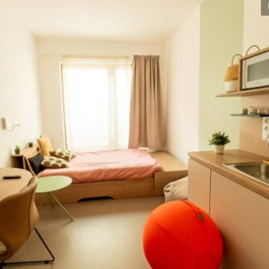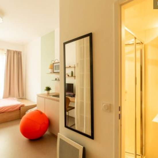 Appartement de type studio, comprenant une pièce de vie avec une cuisine équipée (frigo, plaques de cuisson, micro-ondes, hotte, rangements), un coin bureau, rangements, penderie, un lit en 120 x 200 cm ainsi qu'une salle d'eau avec douche, lavabo et un WC. APPARTEMENT TOUT INCLUS* : Eau froide Eau chaude Électricité Chauffage Entretien des parties communes Wi-Fi ultra haut débit Avec un accès illimité à : Une librairie Des salles de cinéma Une salle de Gym Une salle de sport géante Des espaces détente (minigolf, pétanque, Molky) Un sauna De...
