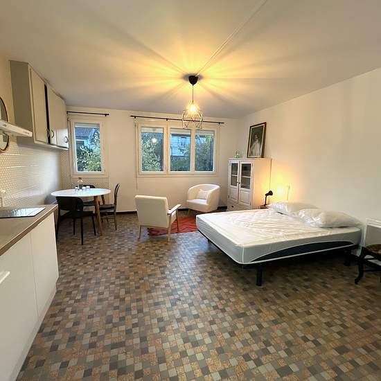 VILLENEUVE SUR LOT, studio meublé d'environ 26 m². Entièrement rénové, il vous satisfera par sa luminosité, sa vue sur un jardin tranquille, et son côté pratique : cuisine avec plan de travail et plaque, micro-onde, frigo, nombreux rangements. Lit en 140 cm confortable et petit coin salon. Salle d'eau avec douche neuve. Plein centre ville, proche des commodités. Classe énergie D. Les informations sur les risques auxquels ce bien est exposé sont disponibles sur le site Géorisques : Logement disponible Retrouvez toutes nos offres sur le site d...