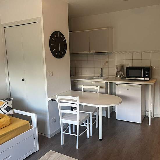 Disponible au 1er novembre Au sein d'une résidence sécurisée, avec ascenseur, joli Studio meublé comprenant une pièce de vie avec cuisine ouverte et salle de bain avec WC . Les charges comprennent l'entretien des parties communes, ainsi que la taxe d'ordures ménagères (avec régularisation annuelle).