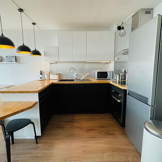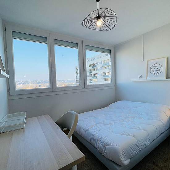 Colocation : 1 chambre disponible sur 4 Situé au 13ème étage, l'appartement, d'une surface de 82m2, est composé d'un espace séjour attenant à un balcon offrant une vue sur tout Lyon, d'une cuisine entièrement équipée, de 4 chambres, d'une salle d'eau et d'un WC indépendant. Il est très bien équipé tant au niveau des parties communes (télévision, frigo-congélateur, lave-vaisselle, plaque de cuisson, four, lave-linge, batterie de vaisselle complète, etc) que des chambres (lit, bureau, chaise, placard et literie). Profitez de la proximité avec ...