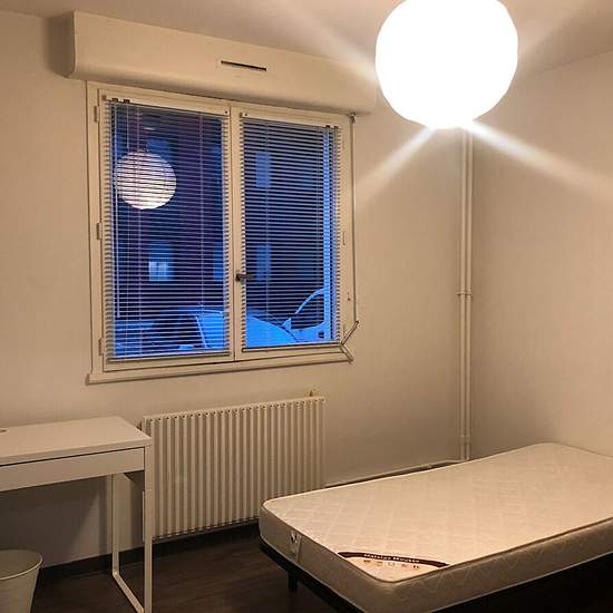 Colocation : 1 chambre disponible A Villeurbanne - secteur LA DOUA Situé en RDC, l'appartement, d'une surface de 101m2, est composé d'un séjour, d'une cuisine entièrement aménagée et équipée, de 5 chambres, de deux salles d'eau ainsi que deux WC. Il est très bien équipé tant au niveau des parties communes (frigo-congélateur, plaque de cuisson, four, lave-linge, batterie de vaisselle complète, etc) que des chambres (lit, bureau, chaise, placard et literie). Profitez de la proximité avec les établissements d'enseignements supérieures (La Doua,...