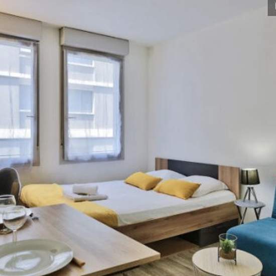 Studio neuf, meublé et équipé d'environ 20m2 dans une résidence pour étudiants, stagiaires, et actifs. Le logement offre un confort avec son aménagement et son emplacement A proximité des commerces et à deux pas du plus prestigieux parc de la ville : le Parc de la Tête d'Or. Un lit double confortable 140x190 Un canapé convertible une place Un hall, une pièce de vie avec un espace bureau ouverte sur la cuisine, salle de bain et WC WIFI Internet Fibre TV pour vous divertir et consulter vos programmes préférés Cuisine équipée avec four à micro-...