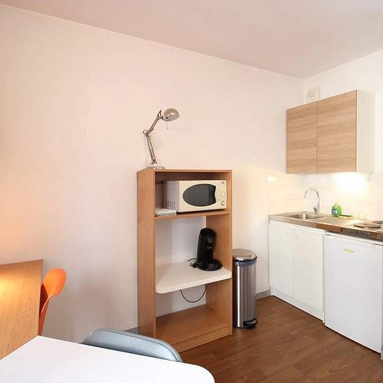 In a secure serviced residence located on Route de Genas, just a short walk from the sought-after Montchat district, discover this charming furnished studio on the first floor with elevator. It consists of a bright living area fitted with a sleeping nook, a workspace, a dining table and plenty of storage, offering an optimized and functional layout. The kitchenette is equipped with hotplates, a refrigerator, a microwave and storage cupboards, allowing immediate move-in. A bathroom with a toilet completes the accommodation. The residence offe...