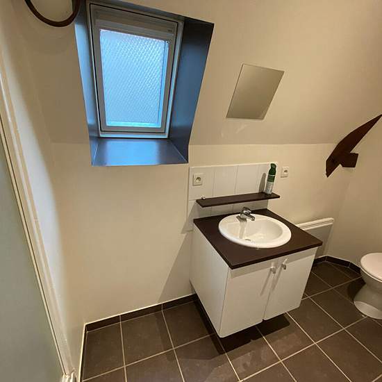 Centre Ville Appartement T1Bis comprenant grande pièce de vie avec placard avec coin cuisine, une mezzanine, une salle d'eau avec WC Loyer 410 euros + 25 euros provision de charges (eau + provision TEOM) . Dépôt de garantie : 410 euros Honoraires part locataire 219 euros (dont 45.00 euros TTC d'état des lieux d'entrée). Libre le 1er janvier 2026