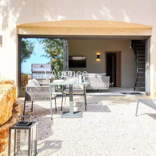 Villa de 68 m2 - Terrain de 500 m2 - 1 Suite - 1 salle de bain Villa intimiste située à La Croix-Valmer, au Domaine Louise. Grande suite avec une unique chambre en mezzanine (jusqu'à deux personnes), terrasse avec Bain Nordique chauffé, vue mer et sur le parc du Domaine Louise. La Villa Mathilde est composée d'un salon (26 m2), d'une cuisine familiale (7 m2) tout équipée avec lave-vaisselle, éléctroménager et machine à café Nespresso. Chambre en mezzanine (22 m2) avec dressing. Salle de bain (13 m2) avec douche à l'italienne. Terrasse avec v...