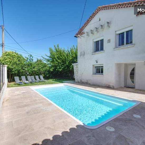 Charming, fully furnished, detached house in Saint-Privat-des-Vieux, 5 minutes from Alès. Ideal for families or professionals on medium-term business trips (mobility lease from 1 to 10 months). This charming 140 m² house with private swimming pool has a lovely living room, a fully-equipped kitchen, six bedrooms, two bathrooms (with shower and bath) and a 40 m² garden. Wifi (fibre optic), bed linen and towels included. The accommodation comprises Ground floor - A 35m² living room with two sofas, a TV, a dining area and a wardrobe. - A fully-e...