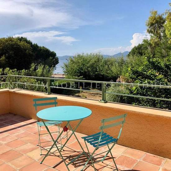 766AK REF 70 Charmante maison sur deux étages avec grand jardin située en face de la plage des Canoubiers se composant de : Au rez-de-chaussée : Une cuisine équipée Un salon avec salle à manger Une chambre avec lit en 90 et salle de douche Toilette Une grande terrasse À l’étage : Deux chambres avec grand lits Une chambre avec deux lits simples Une salle de douche avec toilette Une grande terrasse avec vue sur la mer Charges : linge, ménage, taxe de séjour (6,91€/jour/personne)