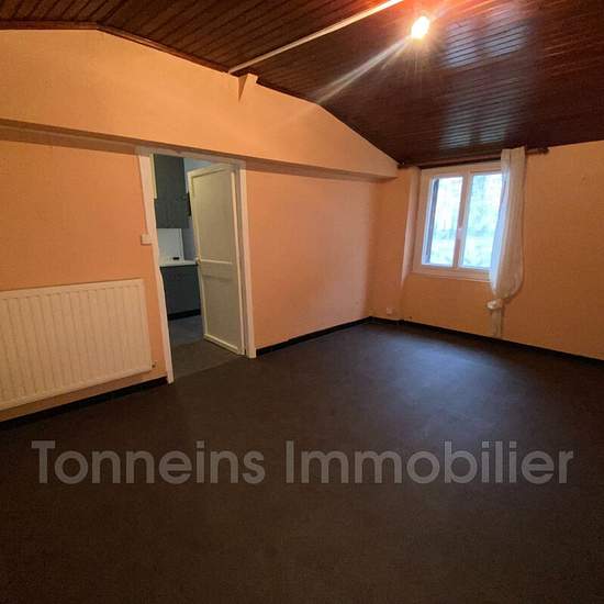 DISPONIBLE !! A louer à Tonneins proche centre-ville un maison en rez-de-chaussée avec un jardin privatif, le bien est composé d'un salon, d'une chambre, d'une cuisine simple, d'une salle de bain et d'un WC séparé. Double vitrage. Chauffage au gaz de ville avec chaudière récente. Loyer CC : 535.00¤ - Charges : 18.00¤ ( TEOM et Entretien Chaudière ) Caution - 517.00¤ - Loyer HC 517.00¤ Honoraires d'agence : 438.28¤ ( Visite / Dossier / Bail 372.24¤ - Etat des lieux : 62.04¤ )
