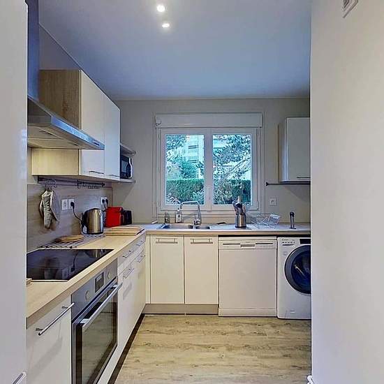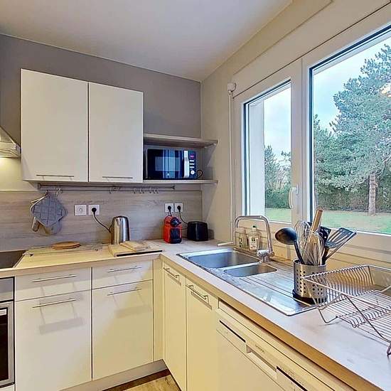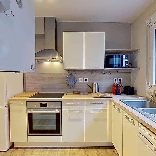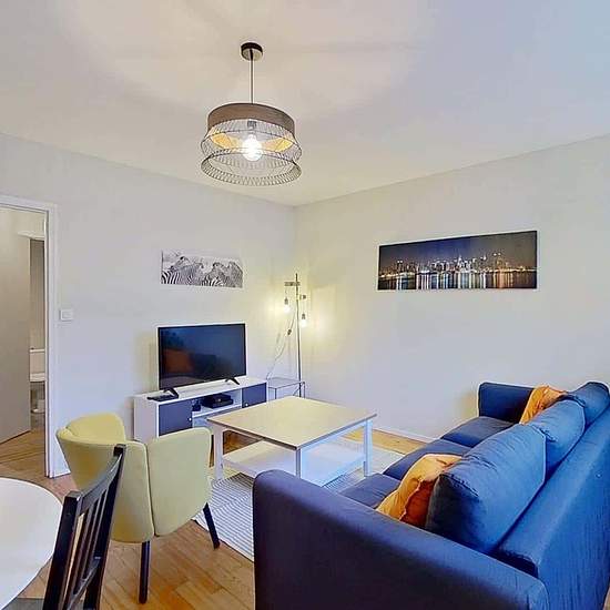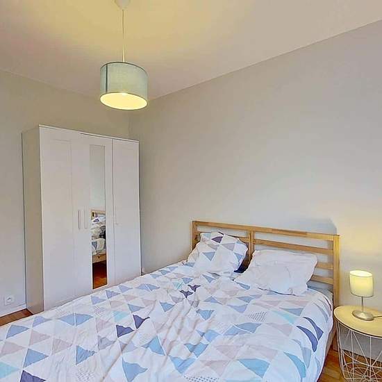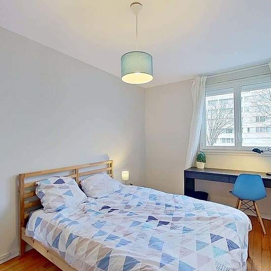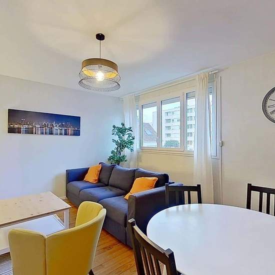 Oqoro vous présente cette colocation de 4 chambres de 83,94 m² au 2 Rue de la Cardonnière à Caen. LA CHAMBRE La chambre est équipée d'un lit double, d'une table de nuit, d'un bureau avec une chaise ainsi qu'une penderie. LES ESPACES COMMUNS La pièce de vie est meublée avec un canapé, un fauteuil, une table basse, un meuble TV ainsi qu'une télévision, une petite étagère et une table à manger avec des chaises. La cuisine séparée est équipée d'un four, d'un micro-ondes, de plaques de cuisson, d'une hotte, d'un évier, d'un réfrigérateur avec c...