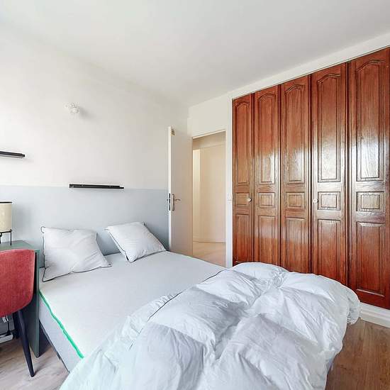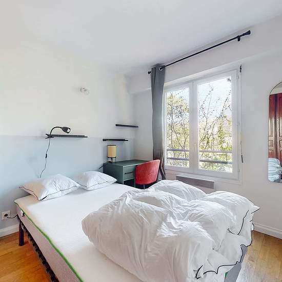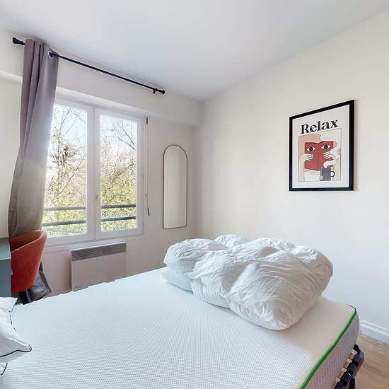 This spacious and comfortable room has been designed for you dear roomie! Practical and functional, the room is equipped with high quality bedding (140x200cm), a beautiful wardrobe, a night table and a true office space for your exams or your home office days! All of this in a cheerful and warm atmosphere. In addition, you have access to a shared bathroom and a shared terrace. Beautiful flatshare in Champs-sur-Marne ! Discover Champs Cornouillers, our cosy and freshly renovated contemporary-style apartment. Close to local shops and resta...