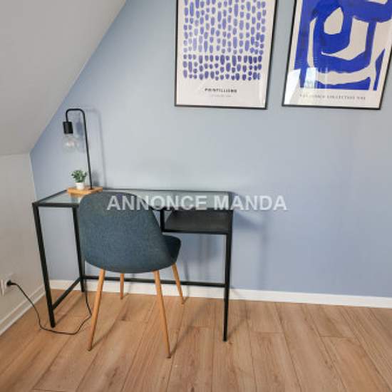 Logement Manda ! Chambre meublée en colocation – à 2 min du métro Lomme-Lambersart (Lille) Manda vous propose une chambre tout confort dans une colocation meublée de 86,8 m², située dans un secteur calme, sécurisé et proche de toutes les commodités. La chambre est équipée d'un lit double, d'un bureau et d'une armoire penderie. Le logement comprend une pièce de vie lumineuse avec accès terrasse, une cuisine ouverte entièrement équipée (lave-vaisselle, frigo, four, vaisselle…), deux salles d'eau dont une privative, un WC séparé, et un lave-lin...