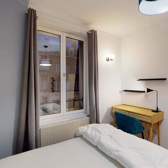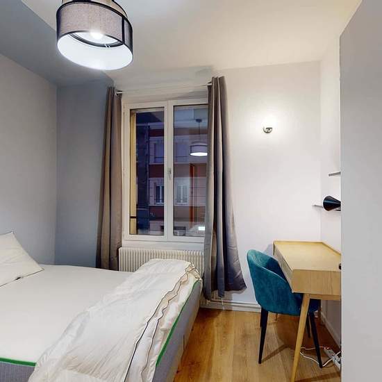 This spacious and comfortable room has been designed for you dear roomie! Practical and functional, the room is equipped with high quality bedding (140x200cm), a beautifull wardrobe, a night table and a true office space for your exams or your home office days! All of this in a cheerful and warm atmosphere. In addition, you have access to a shared bathroom. Beautiful flatshare in Lille ! Discover Lille Isly 1, our cosy and freshly renovated contemporary-style apartment. Close to local shops and restaurants, it is easily accessible by sub...