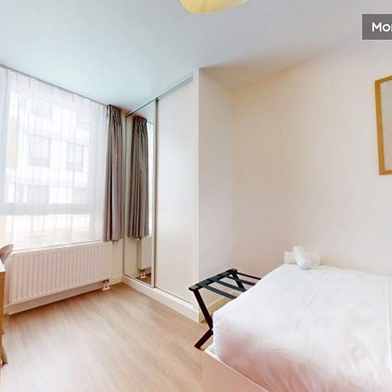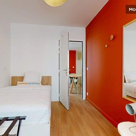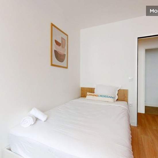 The coliving experience: enjoy a private, modern, comfortable space with access to shared facilities: gym, music room, coworking room, cinema, lounge bar, .... Settle into a 10m² room in a 120m² T5 flat in a new residence near the André Malraux departmental park, close to the La Défense business district, in the heart of the university town of Nanterre! The flat offers you a bedroom with a quality mattress and a desk, a main room shared with a kitchenette and a living room, ideal for all your activities. You'll be able to cook like a Micheli...