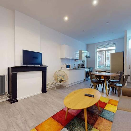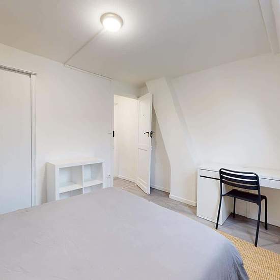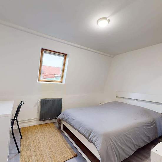 GRANDE MAISON SUR 3 ETAGES - COLOCATION DE 5 OQORO vous présente une maison en colocation de 98 m² et qui se situe au 13 Rue Louis Decottignies, à Roubaix LA CHAMBRE Cette chambre se compose d'un lit double, d'un placard de rangement et d'un bureau accompagné d'une chaise. LE LOGEMENT La maison comporte trois niveaux et cinq chambres dont l’une disposant d’une salle d’eau privative. Au rez-de-chaussée se trouve une première chambre avec salle de bain privée, un salon et une cuisine très bien équipée (Four, micro-ondes, plaques de cuisson, ...