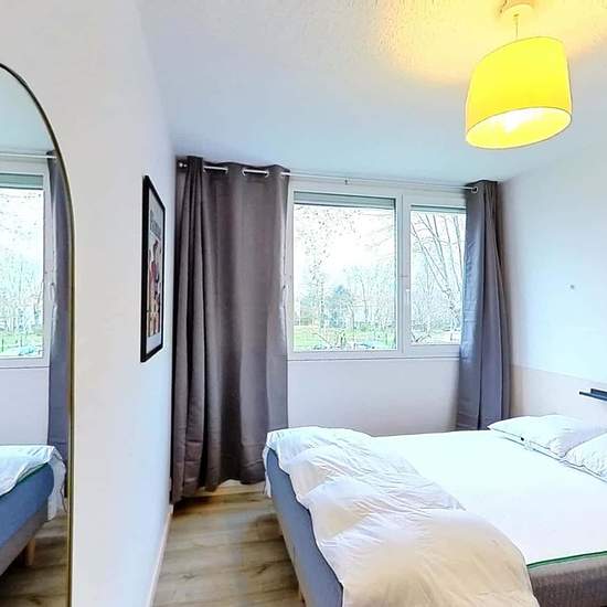 This spacious and comfortable room has been designed for you dear roomie! Practical and functional, the room is equipped with high quality bedding (140x200cm), a beautifull wardrobe, a night table and a true office space for your exams or your home office days! All of this in a cheerful and warm atmosphere. In addition, you have access to a shared bathroom. Beautiful flatshare in Talence ! Discover Talence Peydavant, our cosy and freshly renovated contemporary-style apartment. Close to local shops and restaurants, it is easily accessible...