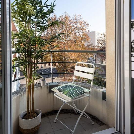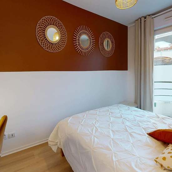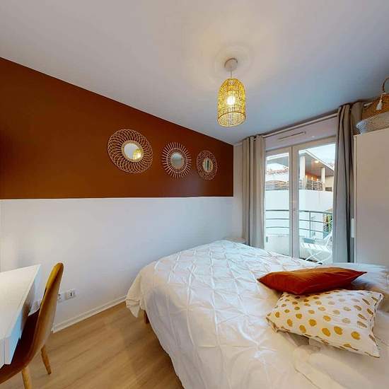 Venez découvrir au 7 avenue Marcel Paul à Vénissieux (69200) cette colocation de 4 chambres de 80 m². LA CHAMBRE La chambre 4 est au fond du couloir à droite, elle est entièrement meublée et possède un lit double, un bureau avec chaise, une penderie et possède son balcon privatif. La chambre est très lumineuse et a été redécorée avec goût et modernité. LES ESPACES COMMUNS Il se compose de 4 belles chambres meublées, elles ont toutes un accès au balcon. Grande pièce de vie avec une cuisine entièrement équipée, un coin repas et un salon ouvr...