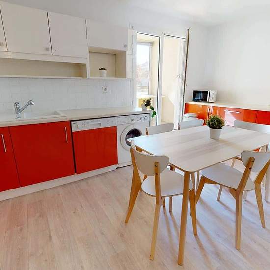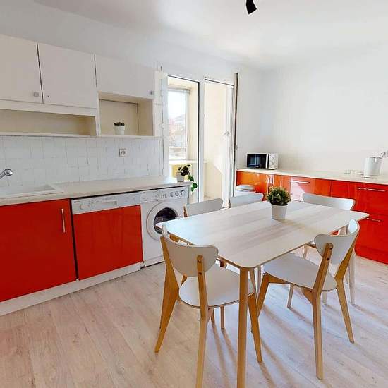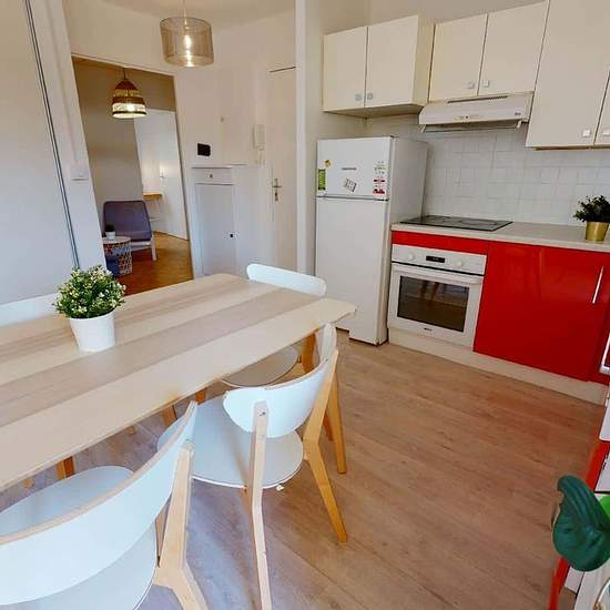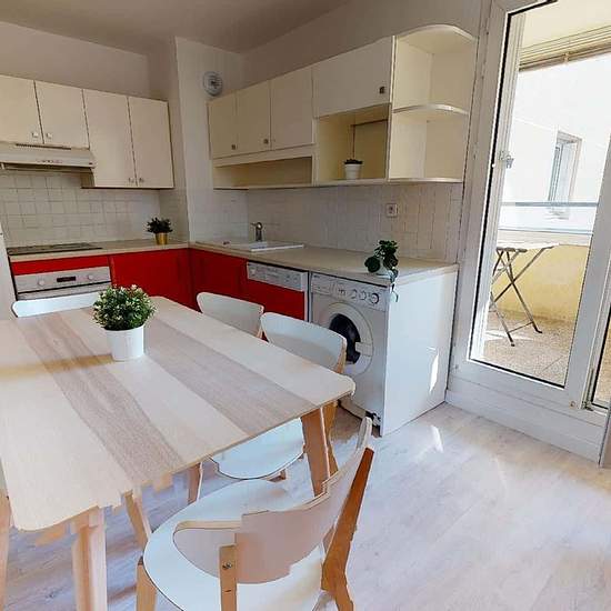 OQORO vous présente cette superbe colocation de 5 chambres de 93m2 entièrement rénové en 2022, idéalement située sur la commune de Villeurbanne au 29 rue Charles Montaland. LA CHAMBRE CHAMBRE 2 : Superficie : 12m2 Équipements : un lit double, des rangements, un fauteuil, un bureau, et une chaise. ESPACES COMMUNS La cuisine est équipée d’un four, d’un lave vaisselle, d’une machine à laver, d’un frigo, d’un micro-ondes, de rangements, etc. Le plus : la cuisine offre un accès à une loggia aménagée avec tables et chaises ! Un coin salon, avec ...