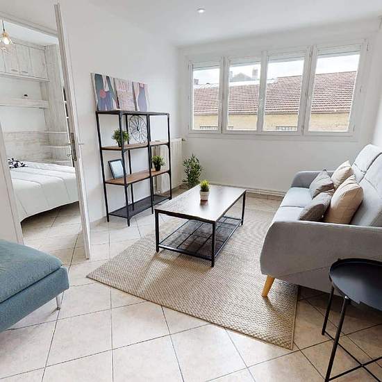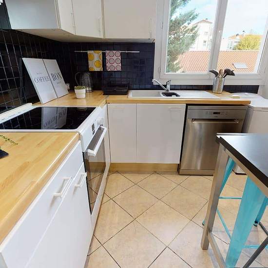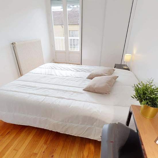 VISITE VIRTUELLE DISPONIBLE SUR DEMANDE LE LOGEMENT OQORO vous présente cette superbe colocation à la décoration moderne de 60m² pour 3 chambres située sur la commune de Villeurbanne, au 63 Rue Louis Becker. LA CHAMBRE Surface : 11m² Équipements : un lit double, un bureau, une chaise et un placard de rangement intégré. ESPACES COMMUNS Cuisine séparée et entièrement équipée Salon lumineux avec canapé, table basse, fauteuil et étagères de rangements. Salle de bain avec douche et meuble vasque WC séparés CADRE DE VIE Ce logement est idéalement...