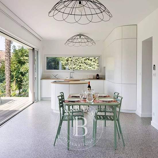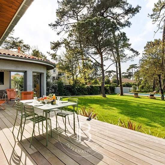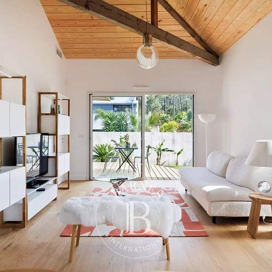 Jolie maison contemporaine de 143m² équipée pour 6 personnes + 2 couchages d'appoint avec piscine (non chauffée) et grand jardin arboré. Elle dispose d’une cuisine conviviale avec un ilot central, d’un grand séjour avec un espace détente et un coin TV. Grande terrasse ensoleillée plein sud avec plancha. Une première chambre double est équipée d’un lit en 140cm, d’une salle de douche et armoire, une seconde chambre avec lit double (140cm) possède également sa salle de douche, ses toilettes et son armoire de rangement et enfin une suite parent...
