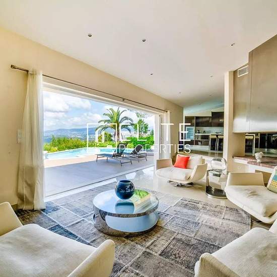 Mouans-Sartoux : Dans le quartier résidentiel de Castellaras, villa individuelle de 588m² sur un terrain de 2730m² avec piscine, située dans un domaine sécurisée. Elle est composée au rez-de-chaussée : d'une entrée, d'un séjour/salle à manger/cuisine de 146m², une buanderie et 5 chambres avec leur salle d'eau/dressing. A l'étage : 2 autres chambres avec leur salle d'eau/dressing. En sous-sol : une grande salle de jeux, salle de cinéma et salle d'eau. Un double garage complète le bien. Possibilité d'accéder aux équipements (tennis et piscines...