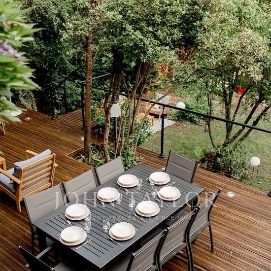 Elégante maison du début XXème, alliant le charme de l'ancien (parquet en chevrons, cheminées, carreaux de ciment) et le confort moderne (climatisation, cinéma, salle de sport), offre 325 m² habitables répartis sur 4 niveaux, avec un jardin arboré de 150 m² et plusieurs terrasses. Le rez-de-chaussée accueille un vaste espace de vie lumineux avec séjour, salle à manger, cuisine ouverte et bureau. Les étages supérieurs proposent 5 chambres dont une suite parentale avec terrasse privée, ainsi que plusieurs salles de bains. Un espace semi-indépe...