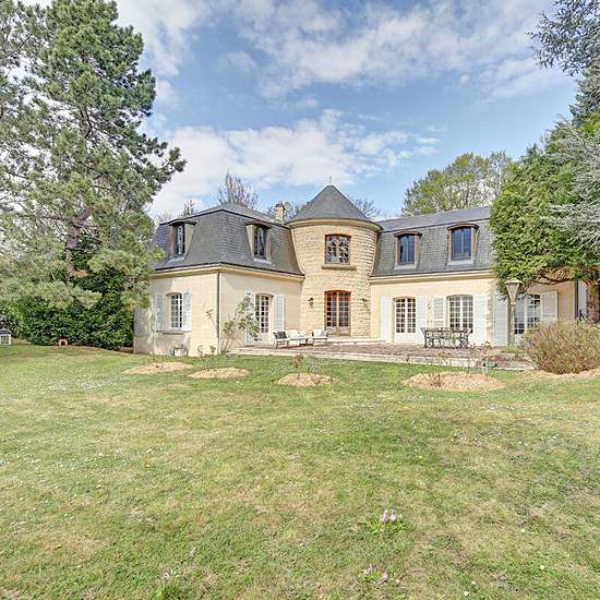 EXCLUSIVITE Golf de ST NOM LA BRETECHE Côté VILLEPREUX, au sein d'un environnement d'exception au calme absolu sécurisé, belle propriété en pierres de tailles meublée entièrement rénovée en 2021 développant 230 m2 de surface au sol ainsi que 67m2 de sous sol sur 3.000m2 de parc avec vue dégagée sur la plaine preservée non constructible de Versailles sans vis-à-vis ni nuisances. Entree, grand salon de 40 m2 avec cheminée, acces terrasse de 80m2, cuisine ouverte équipée italienne de 17 m2, salle a manger cathedrale, grande suite parentale donn...