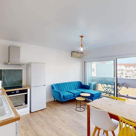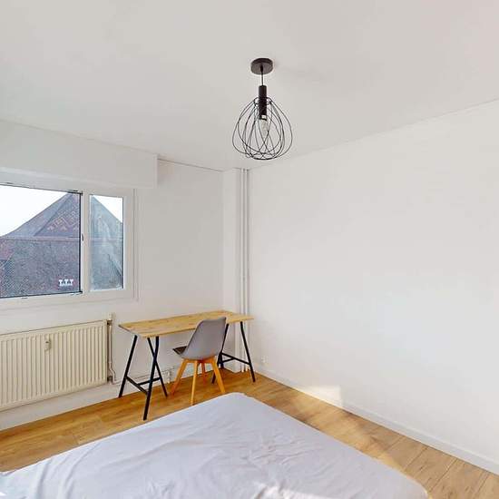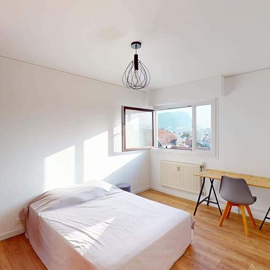 Oqoro presents this 3-bedroom, 65 m² house-share located at 32 avenue du Giffre in Annemasse. THE ROOM This room has a double bed, a desk with a chair, and storage. THE COMMON AREAS The apartment opens onto an entrance with storage leading to a bright living room with an open kitchen. It features a sofa, a coffee table, and a table with 4 chairs. The kitchen is equipped with an oven, hob, extractor hood, fridge with freezer, sink, microwave, plenty of storage, and all necessary utensils and small appliances. The bathroom includes a vanity un...